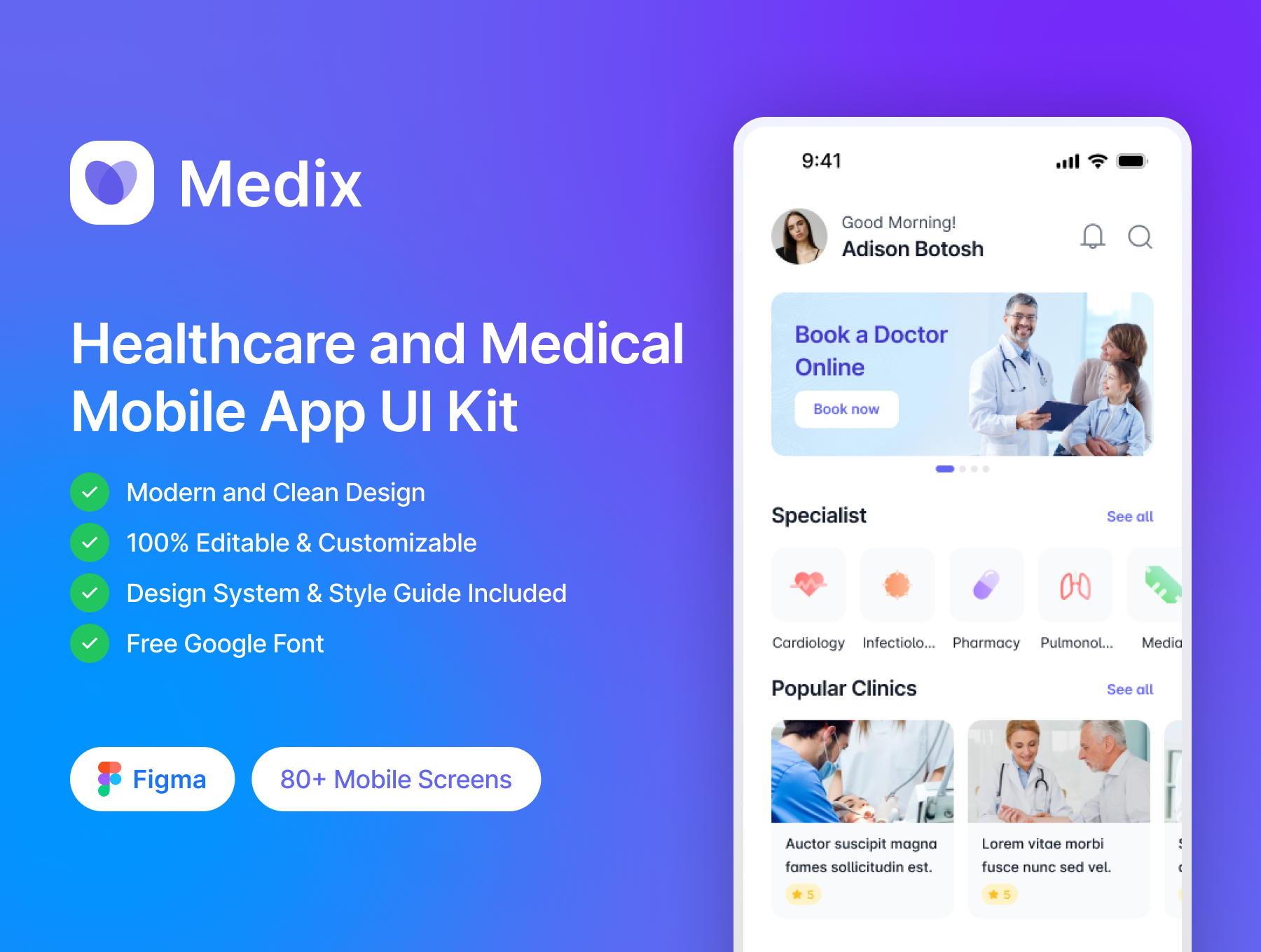 Medix - Healthcare and Medical Mobile App UI Kit, a comprehensive solution designed to enhance the user experience in the healthcare industry. This UI Kit is meticulously crafted to meet the specific needs of medical professionals, patients, and healthcare providers. With a clean and intuitive interface, it offers a seamless navigation experience, ensuring easy access to vital features such as appointment scheduling, medical records, and health monitoring. Elevate your healthcare app with our thoughtfully designed UI Kit, providing a modern, user-friendly, and visually appealing platform for all your medical application needs.